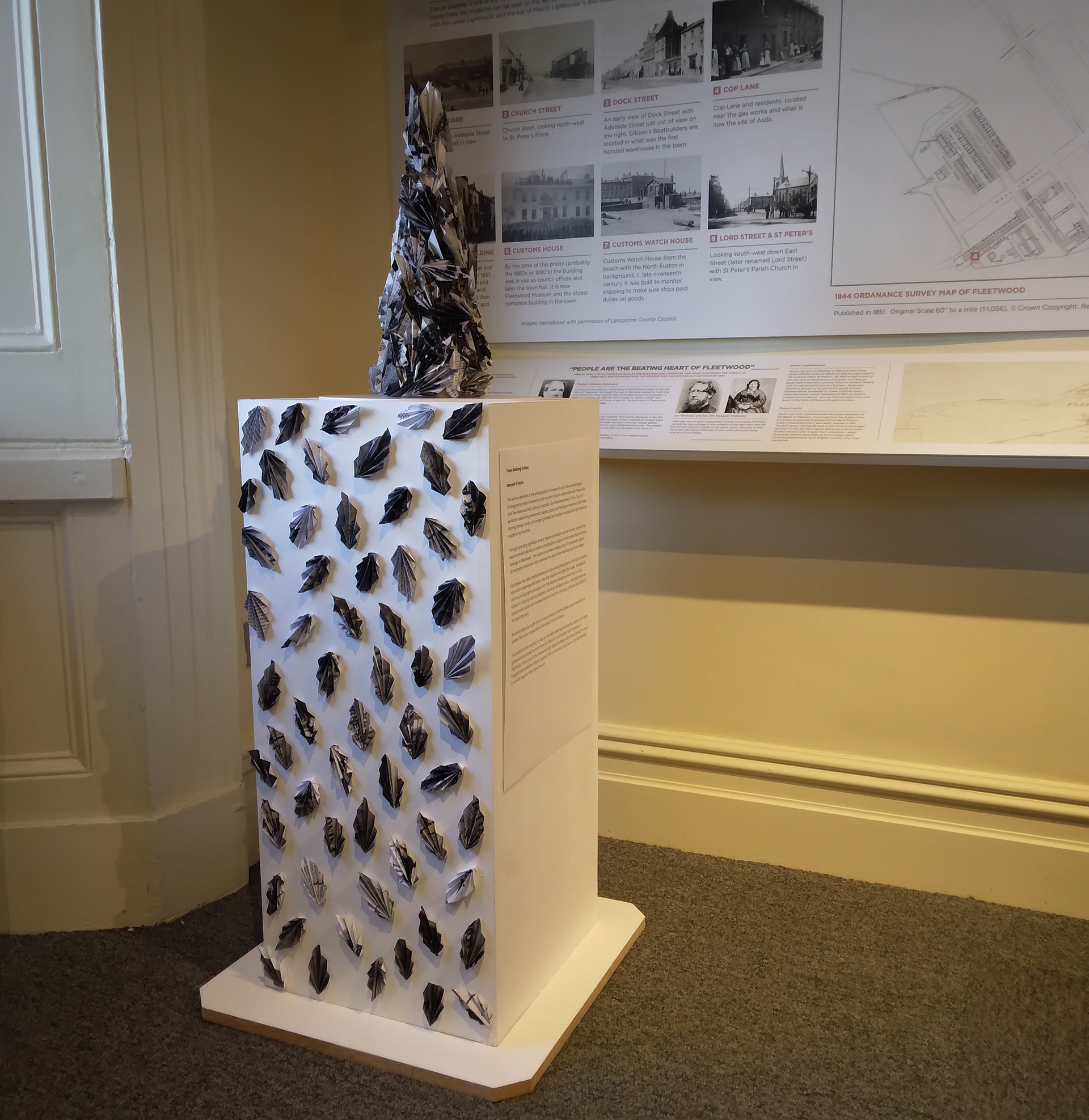 Through spending significant time at Fleetwood Museum over ten months, Hannah has used archival materials to create a photographic sculpture which celebrates the fishing heritage in Fleetwood. The sculpture has been created using 187 handmade origami photography structures which represent the years since Fleetwood was first created.