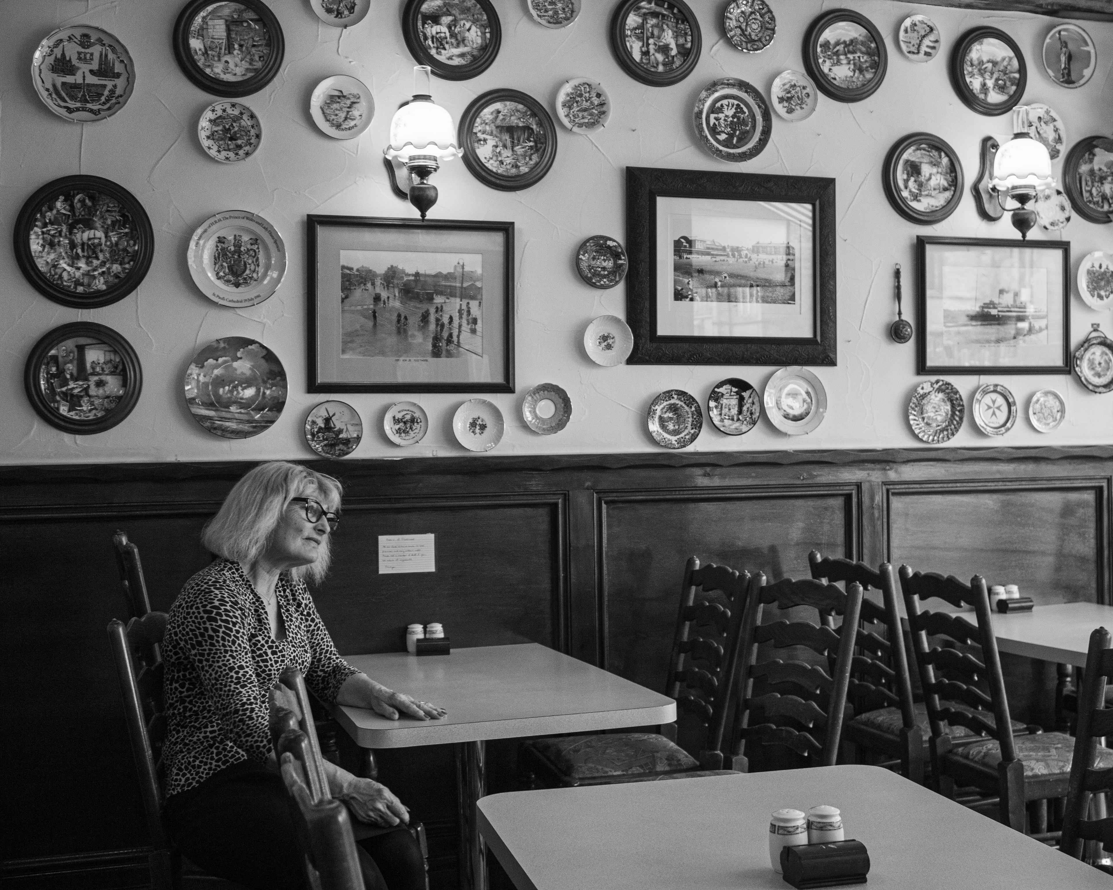 During her various stays in Fleetwood, Hannah O'Hara encountered a variety of personalities, which she captured in 33 black and white Fleetwood portraits. Nursing home residents are photographed in conversation or during daily activities, as are nurses and carers, or seniors who enjoy the seafront, fishermen, builders, shopkeepers, or clerics. Intimate stories were shared, and each portrait subject played an important role in bringing the series and exhibition here together. But they do not solely serve as a representation of Fleetwood. Those portraits also highlight the core middle and working classes who support British economy while away from London-centric themes, politics, or media.